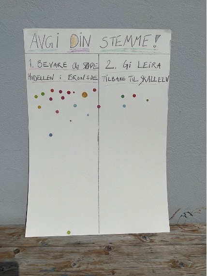 I 2021 ble publikum invitert til å reflektere rundt forgjengelighet og tid, og ut fra dette være med på å avgjøre leiremodellens videre skjebne: Oppløsning i elva mens det filmes, eller bevares i bronse? Resultatet ble at et overveldende flertall ønsket at modellen skulle bevares for ettertiden.